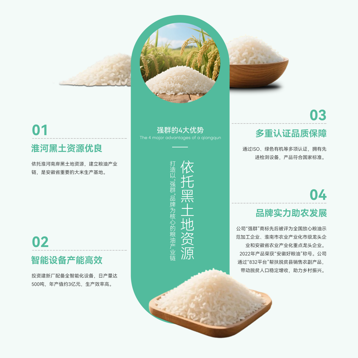- 壽縣強群糧油貿易有限公司成立于2011年,座落在淮南市壽縣澗溝鎮,是一家集種植、加工、收儲、銷售于一體、以生產中、高檔質優(yōu)、特色類大米為主的綜合性企業(yè)。公司依托準河南岸的黑土地資源,打造以“強群”品牌為核心的糧油產業(yè)鏈,是安徽省重要的大米生產基地。 為響應市場增長需求,公司2021年啟動二期擴產工程,其中新生產廠區(qū)建設投入資金近億元,建設現代化新生產線,總占地面積約4000...